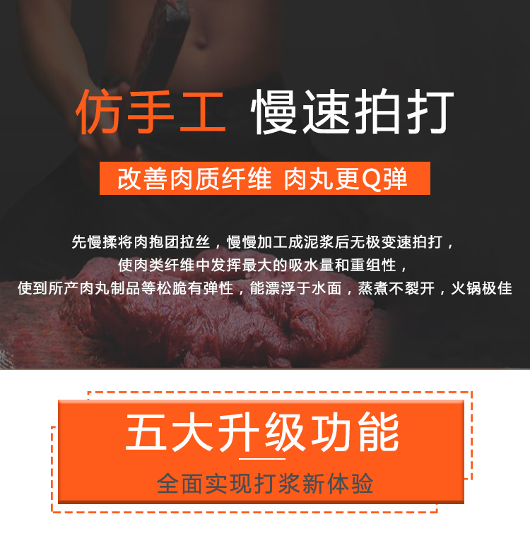 中大型魚丸打漿機采用全不銹鋼材質,有效的保護了電動機,操作上更安全,制作魚丸更衛生,42型慢速肉丸打漿機可一次加工50斤左右魚漿,是中型魚丸,牛肉丸加工首先選慢速拍打設備之一,贛云歷經十年品質,為您加工魚丸,牛肉丸等設備保駕護航。