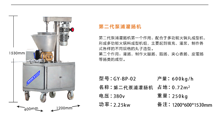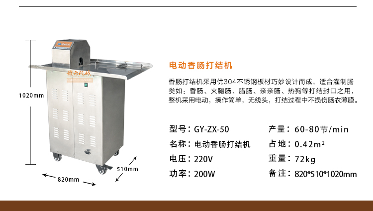 親親腸生產線,采用凍肉原料加工生產,配凍肉刨肉機、凍肉絞肉機、調速打漿機、泵浦灌腸機和電動香腸扎線機。