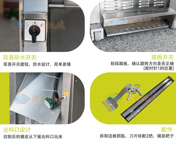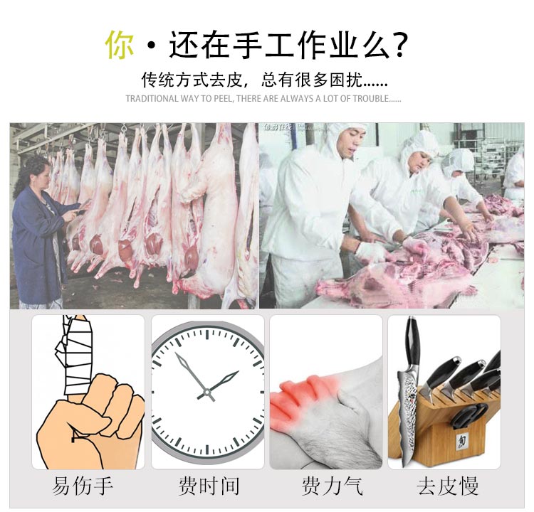 豬肉扒皮機(jī),扒皮用什么好,扒皮機(jī)那個牌子的好豬肉去皮機(jī)扒皮機(jī)采用不銹鋼制造,去皮機(jī)符合食品衛(wèi)生標(biāo)準(zhǔn)。去皮機(jī)可調(diào)式刀座,豬肉去皮機(jī)方便調(diào)整去皮厚度。去皮機(jī)采用優(yōu)質(zhì)刀片,去皮皮厚可調(diào)節(jié),去皮機(jī)附移動輪,移動方便。扒皮機(jī)腳踏板式操作安全開關(guān),操作安全。