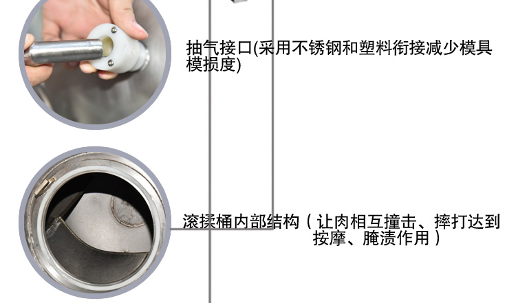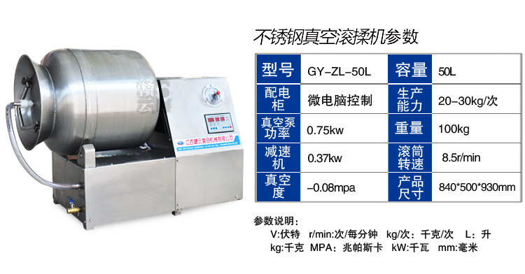滾揉機(jī)可以使肉均勻的吸收腌漬,可以提高肉的結(jié)著力及產(chǎn)品的彈性;可以提高產(chǎn)品的口感及斷面效果;可以增強(qiáng)保水性,增加出品率;可以改善產(chǎn)品的內(nèi)部結(jié)構(gòu),節(jié)能高效。整機(jī)采用不銹鋼制造,結(jié)構(gòu)緊湊,滾筒兩端均采用旋壓式封帽結(jié)構(gòu),最大的增加滾筒內(nèi)的摔打空間,使?jié)L揉產(chǎn)品的效果均勻,噪音小,性能可靠,操作簡(jiǎn)便,使用效率更高。