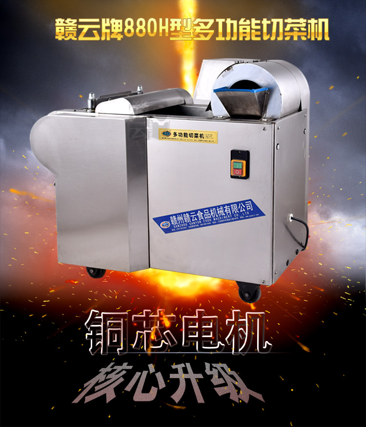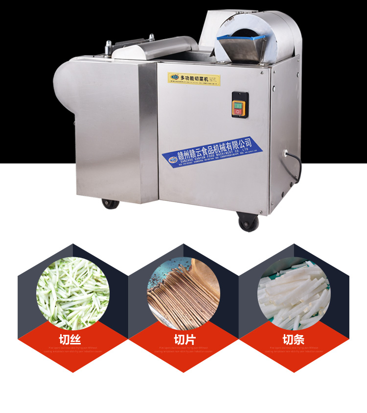 2015年新款加厚型切菜機(jī)是我廠經(jīng)過多年的切菜實(shí)踐經(jīng)驗(yàn)和客戶反饋等綜合信息考慮設(shè)計(jì)而成的,比原來的880型切菜機(jī)加厚板材,并配用全銅芯超穩(wěn)定型電機(jī)。保證產(chǎn)品質(zhì)量的同時(shí),使得產(chǎn)品外形更加美觀,更顯不銹鋼檔次。一小時(shí)可切600公斤蔬菜,切菜厚薄可調(diào)0-20mm,切片厚薄可調(diào)0-10mm,模擬手工切菜原理設(shè)計(jì)而成,采用輸送帶完美配合離心切片機(jī)構(gòu)和豎刀切菜機(jī)構(gòu),運(yùn)用手壓原理將切切成有規(guī)則的,間隙均勻的片、丁、絲、條等狀。