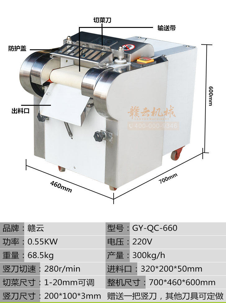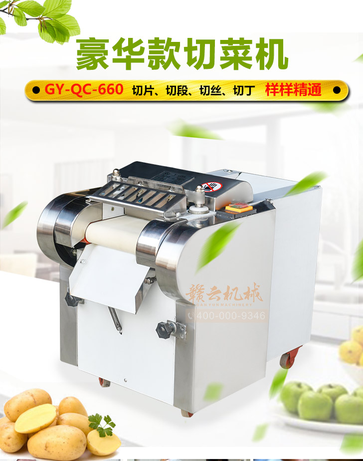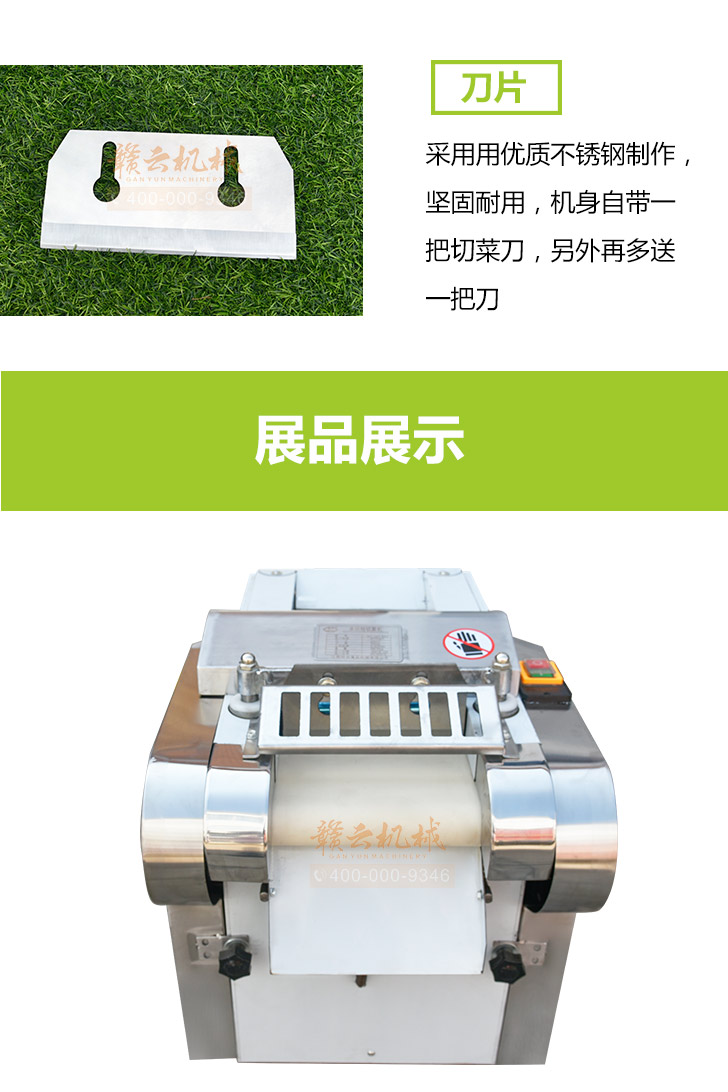 贛云牌多功能切菜機是根據(jù)多種樣機在實地使用中存在不足之處,反復改進設計制造,采用不銹鋼和全滾動軸承結構,具有外形美觀,成熟可靠,使用維修方便等特點。適用直蔬菜脫水、速凍、保鮮、腌漬等食品行業(yè)各類蔬菜。刀片距離可調(diào)節(jié)在0.1cm-2cm之間即切片、丁、絲厚薄在0.1cm-2cm。