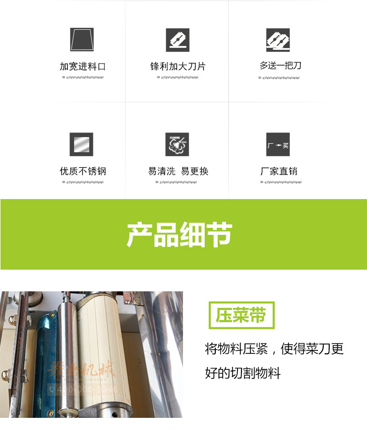 4、蘆薈粒、蘆薈條。改變切刀與送料槽安裝角度為專斜切機將根莖類蔬菜:如馬鈴薯、蕃薯、黃瓜、竹筍、洋蔥、茄子等切片、條、丁,適合衛(wèi)生餐飲人員或食品加工廠使用. 用途:葉菜類:可切芹菜、大白菜、高麗菜、菠菜、蔥、大蒜、瓜類等長條狀之物切成片、絲、段狀,適合食品加工業(yè)者配合自動化生產(chǎn)線。