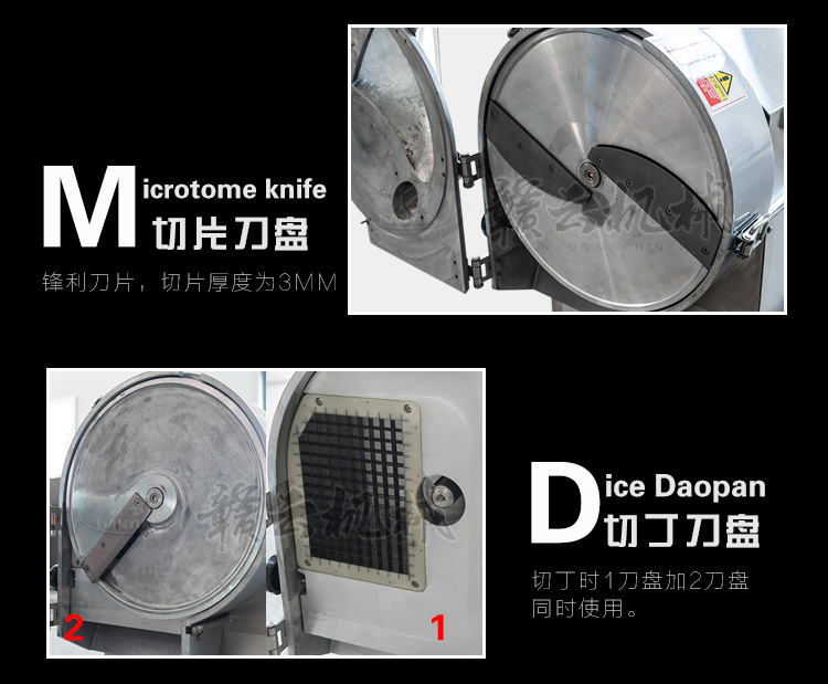 適用于土豆、蘿卜、瓜薯類、胡蘿卜、洋蔥、茄子、黃瓜以及咸菜等蔬菜類食品加工、可切絲、切片。
