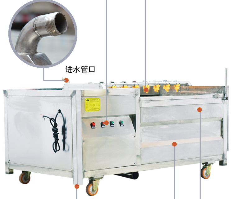 毛輥式連續(xù)自動(dòng)清洗機(jī)采用食品級(jí)不銹鋼制造而成、堅(jiān)固耐用,毛輥全部采用優(yōu)質(zhì)樹脂、韌性高、耐磨性好,從而達(dá)到洗潔凈高、節(jié)省勞力、節(jié)水。