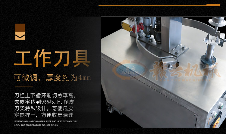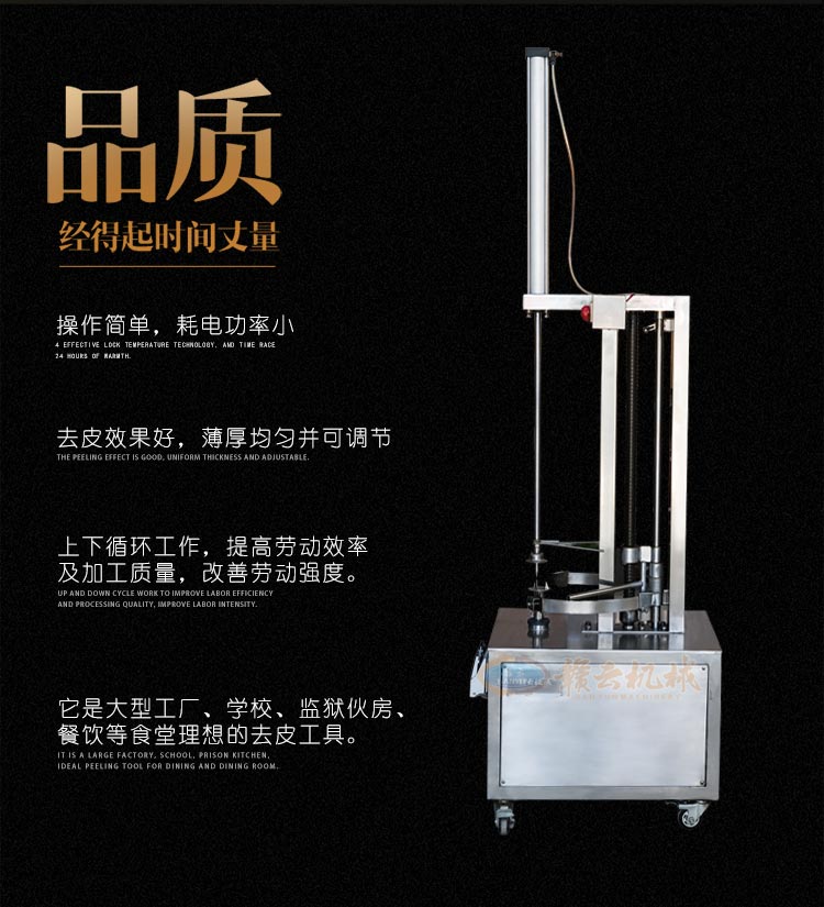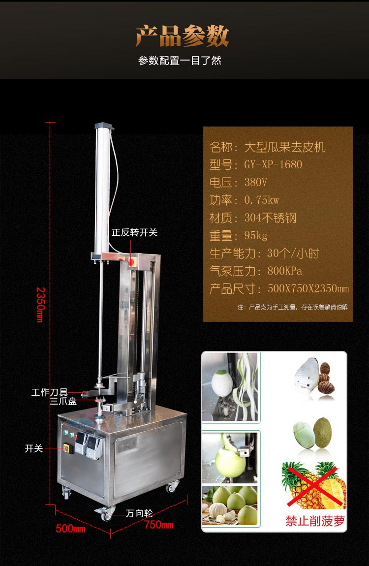 電動(dòng)不銹鋼大型瓜果去皮機(jī)適用于木瓜,南瓜,冬瓜,哈密瓜,柚子等大中型瓜類削皮,削皮厚薄可調(diào)。刀組上下循環(huán)削切效率高,去皮率高達(dá)95%以上。削皮刀架特殊設(shè)計(jì),可使瓜皮定向排出,方便收集清理。機(jī)器拆洗方便,使用時(shí)操作簡(jiǎn)單,清洗方便,安全衛(wèi)生。去皮機(jī)適用于餐飲行業(yè),飯?zhí)茫称芳庸S,冷凍食品廠,休閑食品廠,西餐店設(shè)備,飲品店設(shè)備,茶餐廳等。防水開(kāi)關(guān),可調(diào)厚度,鋼質(zhì)刀片耐用不生銹。它是大型工廠、學(xué)校、伙房等食堂理想的去皮工具。
