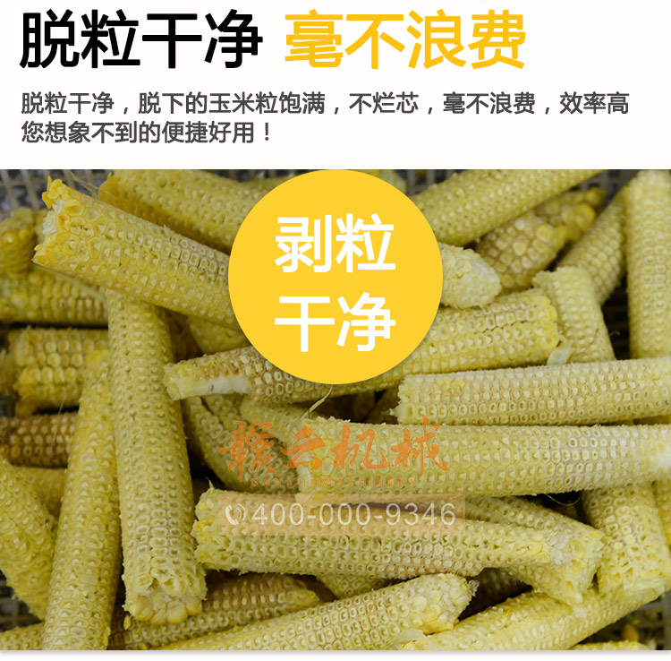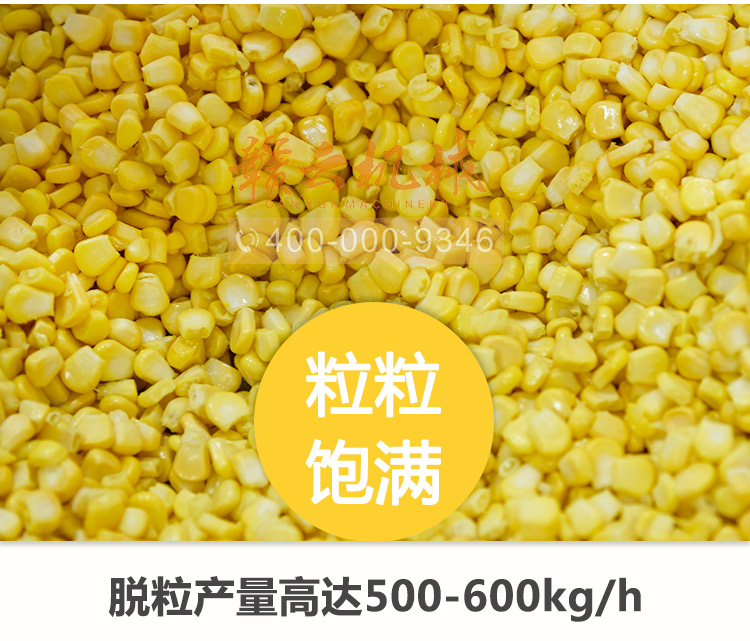 脫凈率高——可根據玉米棒大小自動調節(jié),適合各種大小玉米的脫粒,脫粒深淺可調,甜玉米剝凈率可達100%。