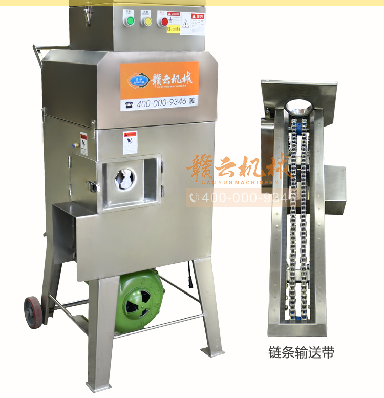 入料方便——入料口處配有鏈條進給裝置,有效地提高了工作效率(此裝置可根據需要裝卸)。