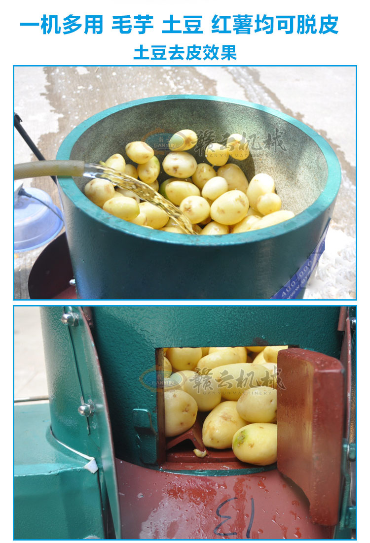 具有良好的防銹.防腐.耐磨損等特點.去皮快速,清潔衛生,可以脫毛芋頭皮,土豆(馬鈴薯)皮等,性能穩定操作簡便,安全,可確保去皮質量,且省電省水省時間 適合農產品加工單位及個體加工經營,脫皮后的芋子.土豆等,可以散裝或袋裝在各超市菜市場 分銷批另.