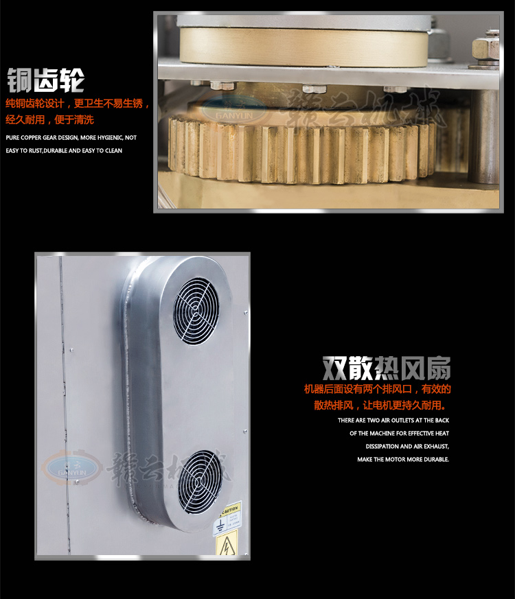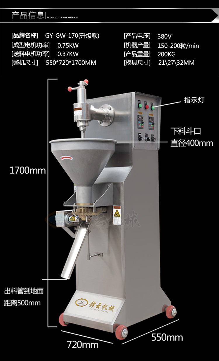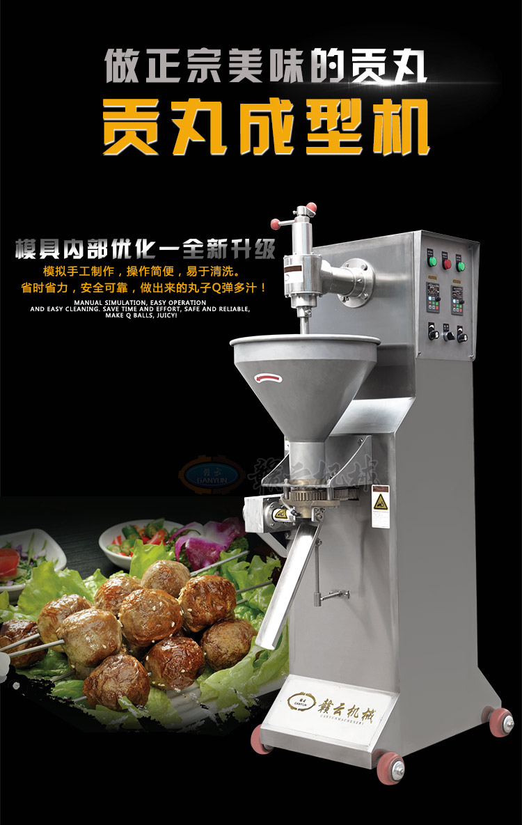 贛云牌貢丸成型機采用雙速系統,推料和挖出成型各用一個電機,挖出成型采用半球形舀勺仿人工制作,設計科學合理,采用全不銹鋼材質,符合食品衛生加工要求貢丸大小由模具控制,每分鐘可加工成型200粒貢丸,機器的操作和清洗都很方便。隨機配成型模具:27mm、21mm和32mm。可定制18mm,34mm模具哦。