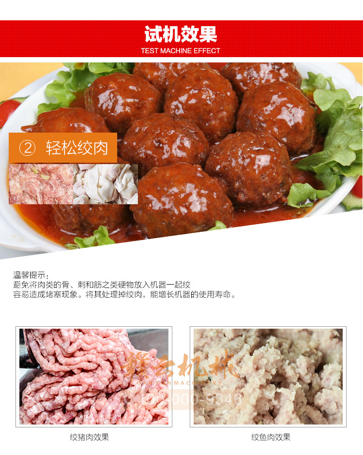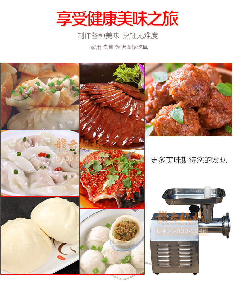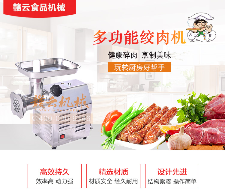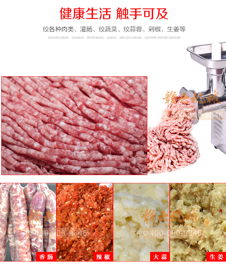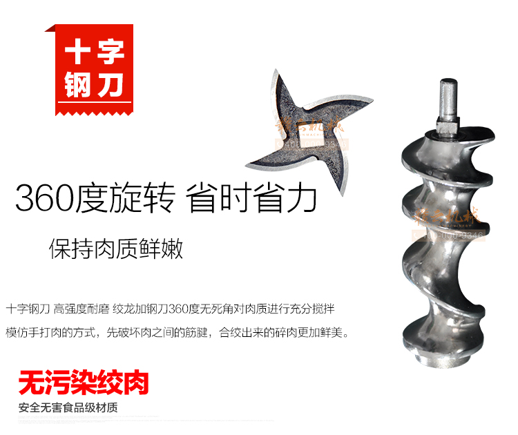 這款22型臺式不銹鋼絞肉機,采用平滑帶槽三通升級,融合不銹鋼絞龍設計,外觀設置更顯檔次,散熱性能更好,體積更大!時絞肉量220kg