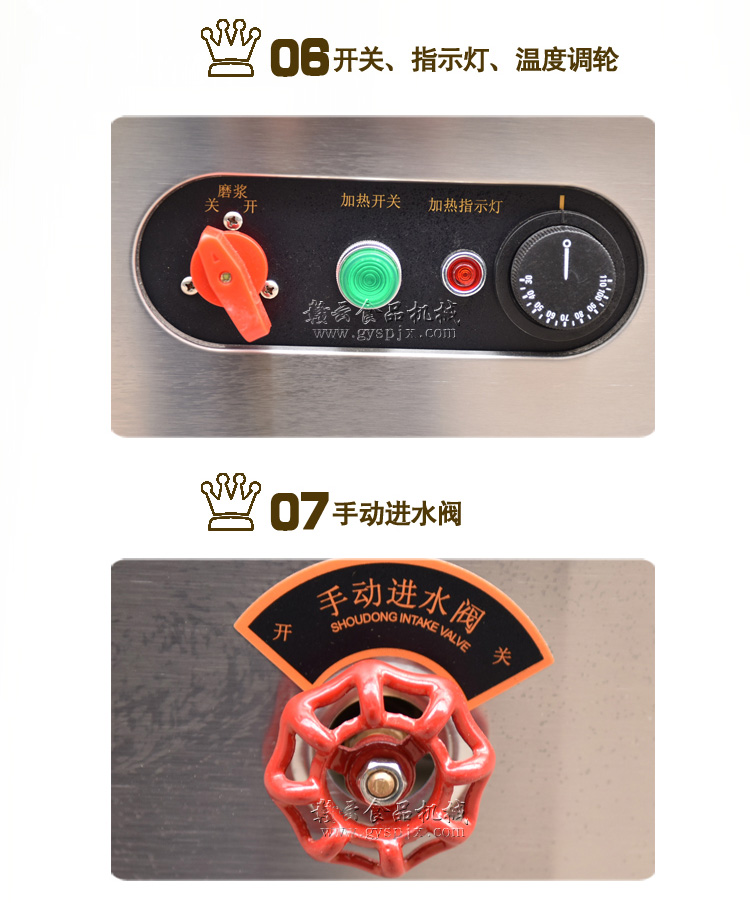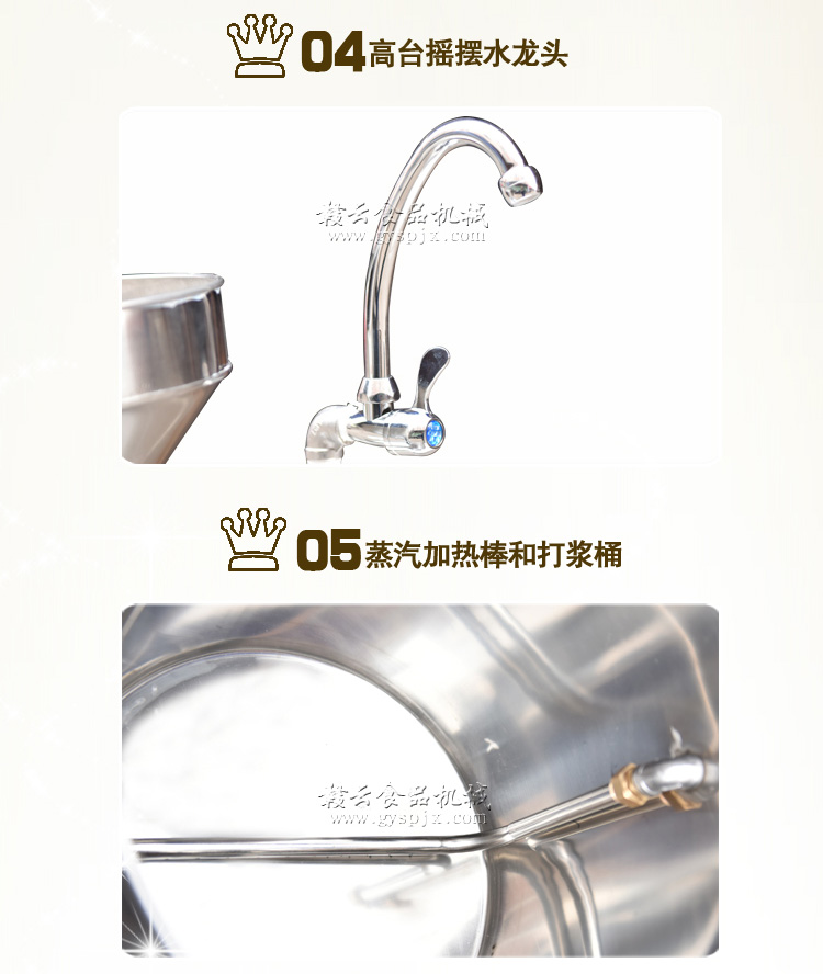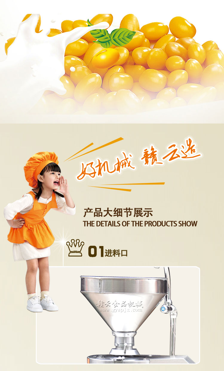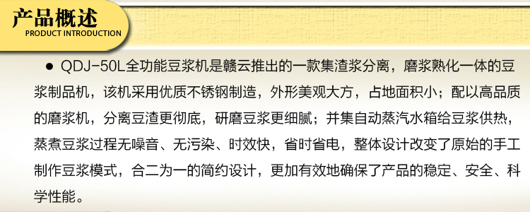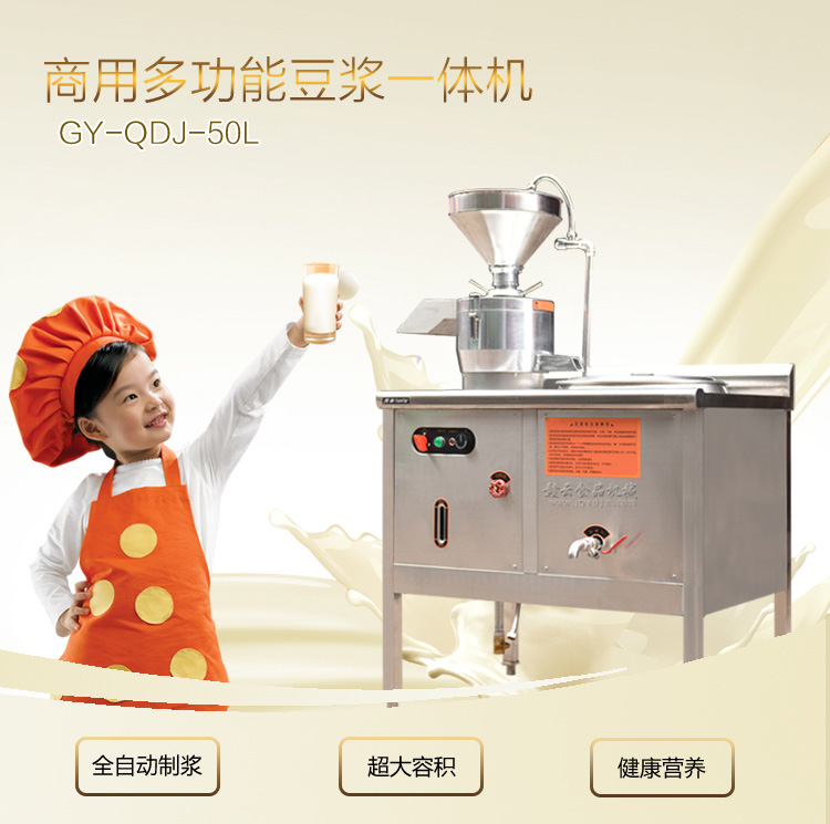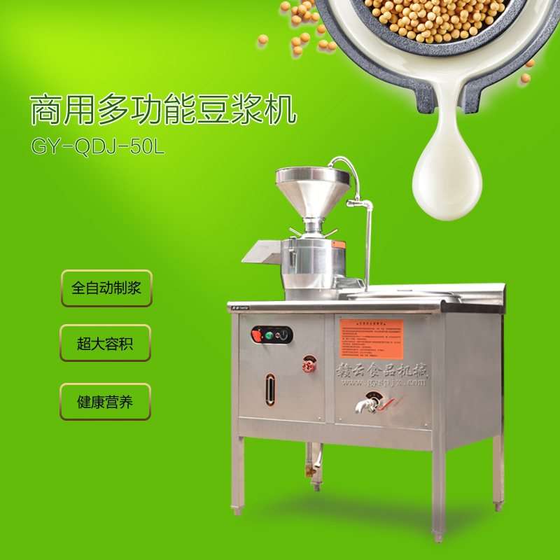 全功能豆漿機均采用優質不銹鋼制造,配以高品質的大方磨漿機,更加有效地確保了產品的安全性能。整體設備由磨漿分離系統、自動蒸氣水箱、蒸汽成形系統科學組合而成,外形設計占地面積小、無噪音、無污染、同時具有省時、高效、耗能低等優點改變了原始的手工制作模式,使豆制品工業突破了傳統,領導著潮流的未來!