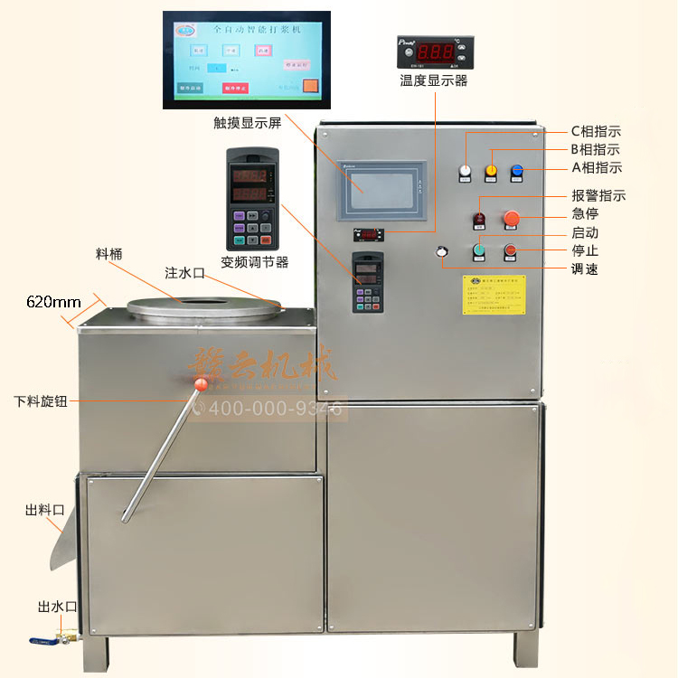 擁有一臺三速制冷打漿機,你就等于擁有:一臺慢速制冷打漿機、一臺高速制冷打漿機外加一臺變頻調速制冷打漿機,從投入的角度你就省了好幾萬。一臺三速制冷打漿機占地面積不到1.5個平方,而三臺機器占地面積至少需要8個平方,面積又省了,再看三速制冷打漿機,無需擔憂肉質問題,敏感的溫度感應自動報警停機系統,配合流水式出漿,省時省力,可安全放心生產,不僅是中小肉丸廠商選擇的打漿設備,同時也是大型肉丸廠實驗用制漿設備。贛云三速制冷打漿機,程序智能控制,傾力打造智能打漿設備的優良品質。贛云三速制冷打漿機,多功能打漿設備的贛云代表作品,引導打漿設備,贛云造,你值得擁有!