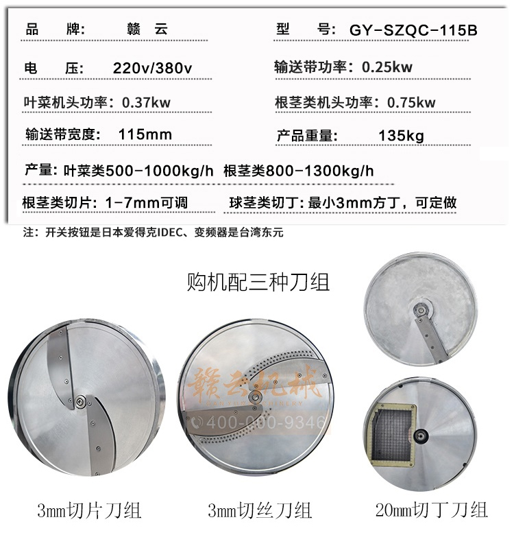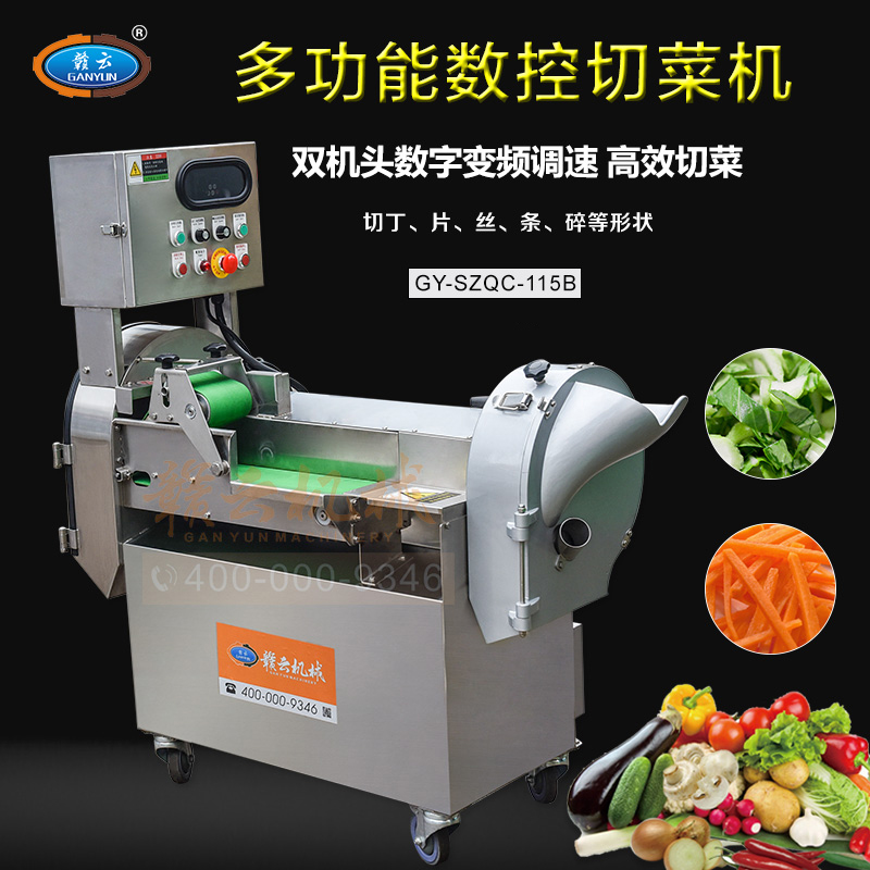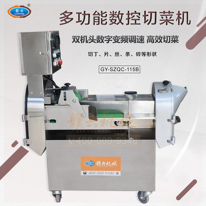 贛云115B型號數字雙頭切菜機,是原115型數字切菜機的升級版,采用新型機種設計,是中央廚房凈菜加工設備切割多元化設備之一,適用于葉菜類、球根類果蔬的切割,雙機頭切菜,切菜長度規格可調,切菜速度和切刀速度變頻可調,適用于切割范圍0-60mm。企事業單位食堂切菜能手。告別切菜煩惱,降低企業勞動成本,提高切菜效率和速度。