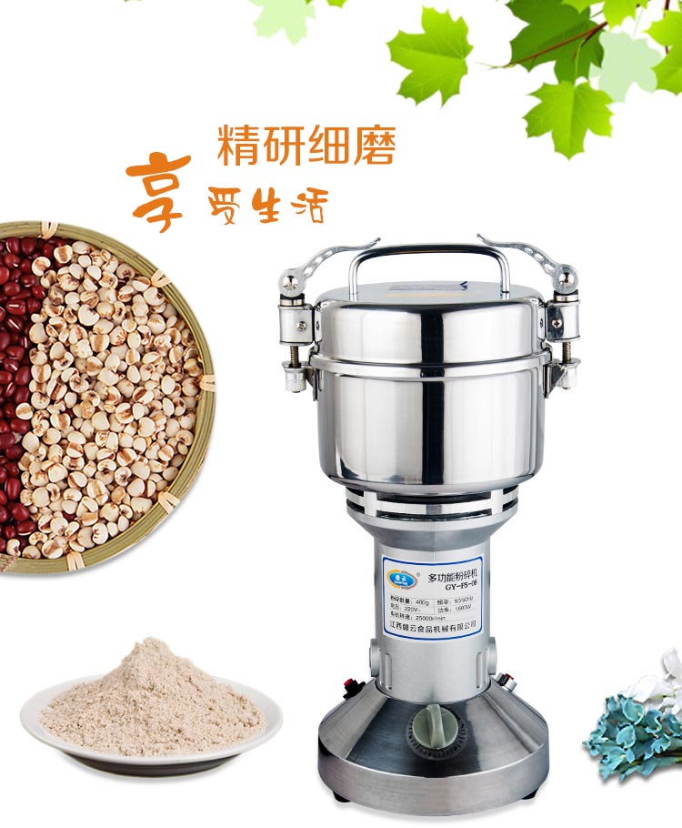 中藥、五谷粉碎機 三七打粉機 新款上市,贛云400克直立卡扣粉碎機采用優質純銅電機,食品級不銹鋼,堅持品質。