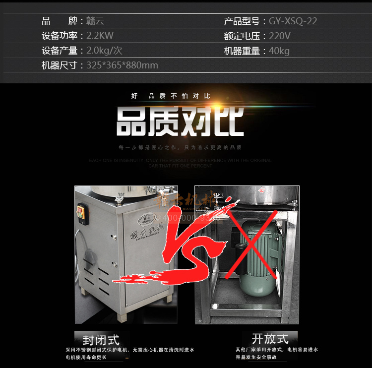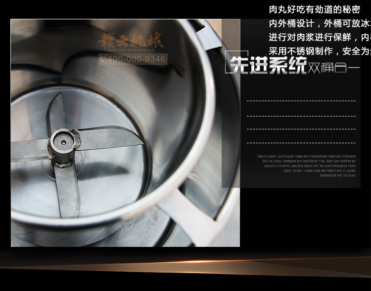 1、全封閉設計,針對GY-XSQ-22型肉丸機進行安全性能升級,更好保護電動機;