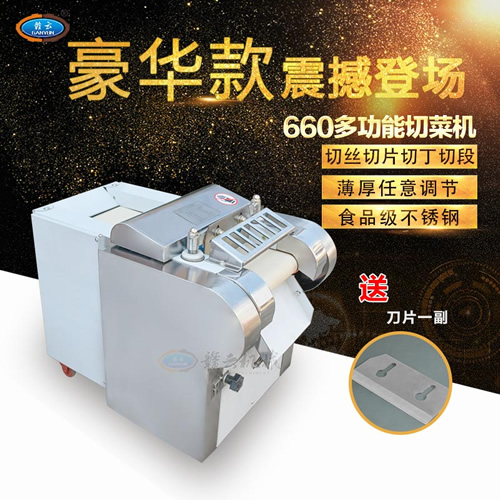 贛云牌多功能切菜機是根據多種樣機在實地使用中存在不足之處,反復改進設計制造,采用不銹鋼和全滾動軸承結構,具有外形美觀,成熟可靠,使用維修方便等特點。適用直蔬菜脫水、速凍、保鮮、腌漬等食品行業各類蔬菜。刀片距離可調節在0.1cm-2cm之間即切片、丁、絲厚薄在0.1cm-2cm。