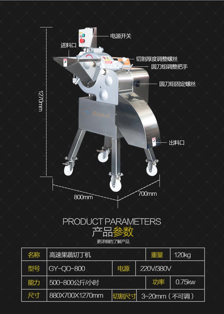 果蔬切丁機技術參數: