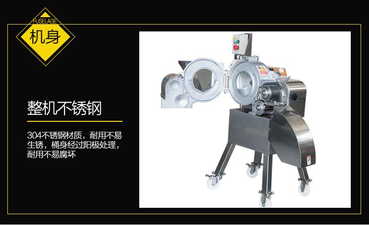 2.1.2 切丁機材料選用必須符合食品衛生要求,機架、殼體、撥盤、料斗及與食品接觸的部件均由不銹鋼制