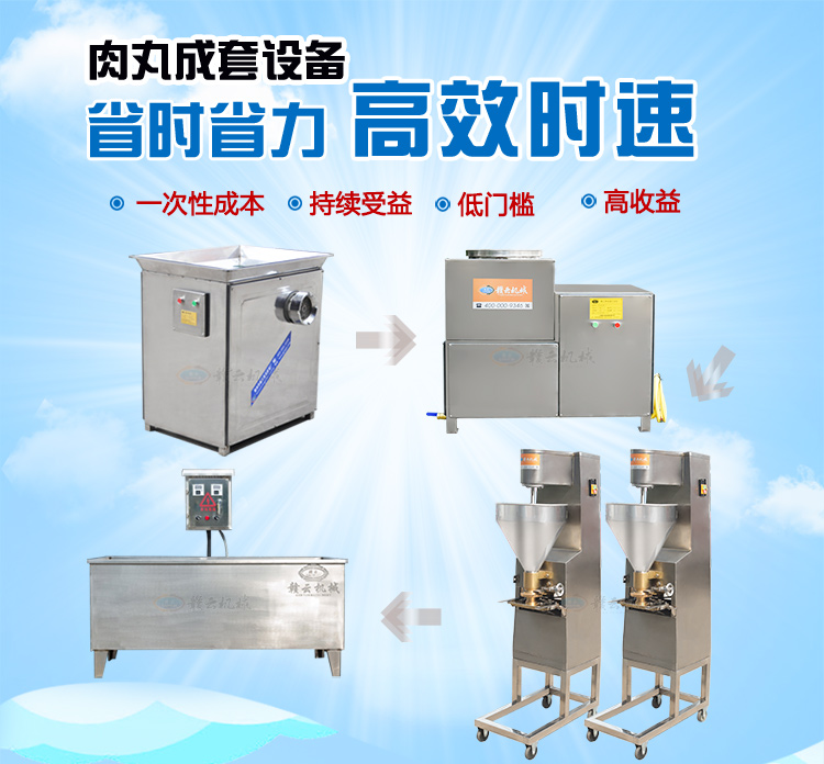 該套設備是生產500斤實心肉丸成套設備,一次性成本,持續收益,低門檻,高收益。3-4人人工生產肉丸,日產量200-300斤,效率低,速度慢。每月還需要支付昂貴的工資。而機器的日產量500斤,成型效果好,節約人工成本,一套機器可以用大概10年-20年。
