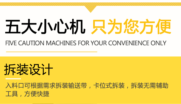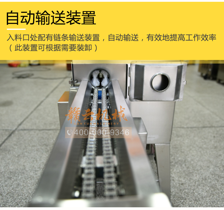 入料方便——入料口處配有鏈條進給裝置,有效地提高了工作效率(此裝置可根據需要裝卸)。