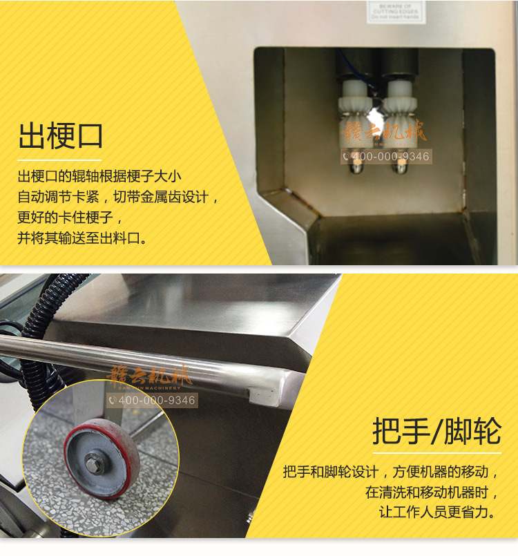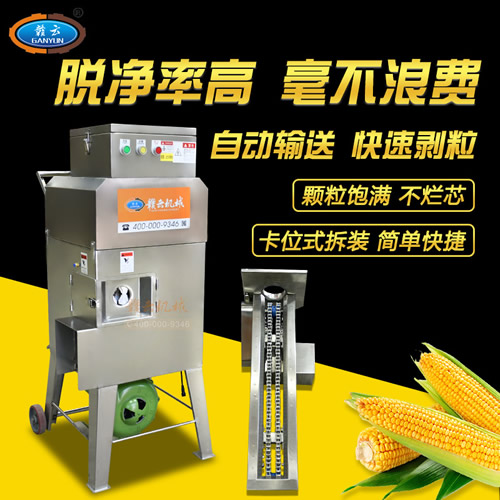 脫凈率高——可根據玉米棒大小自動調節,適合各種大小玉米的脫粒,脫粒深淺可調,甜玉米剝凈率可達100%。