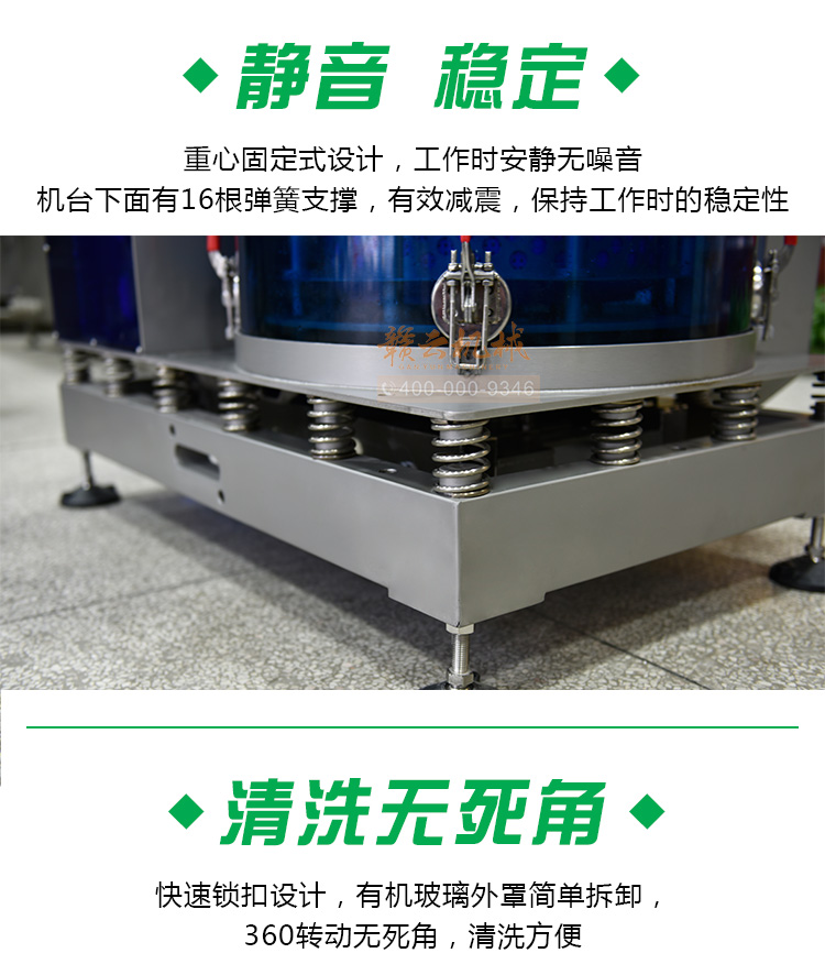 (1)穩定性。工作時,機臺下面有16根彈簧支撐,保持工作時的穩定性。