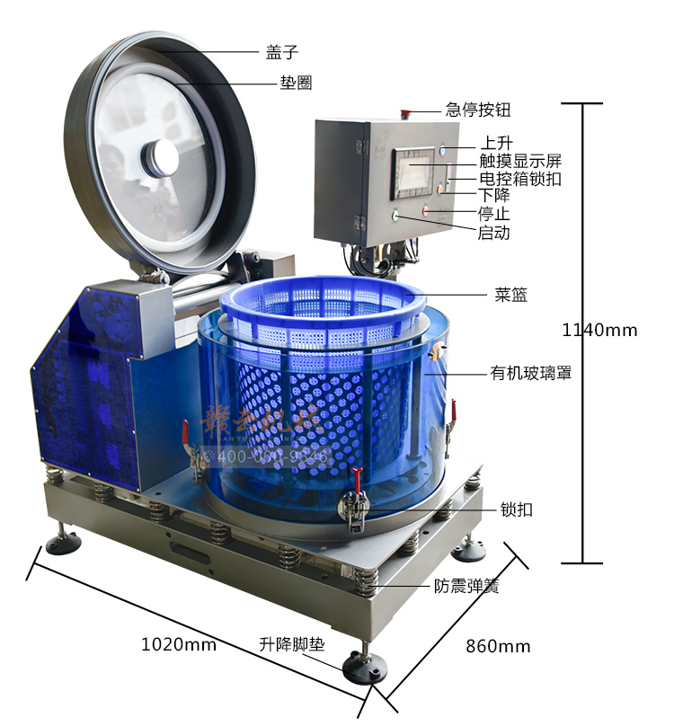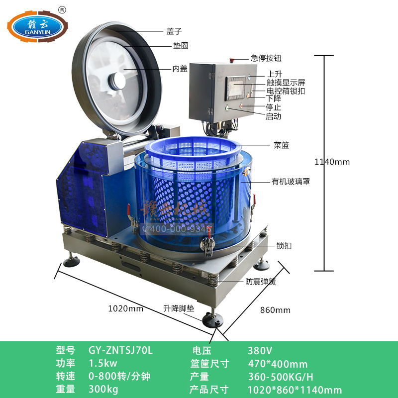 (5)脫水過程可調節速度和時間適于不同的菜品需求不同的轉速。