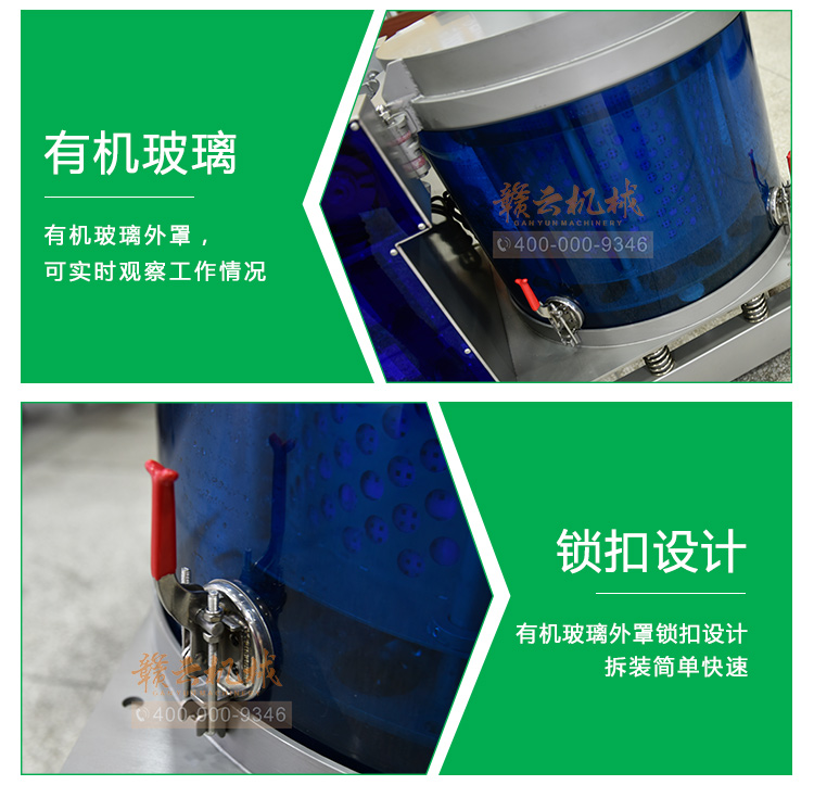 (2)低噪音。機臺工作時比較靜,打破目前市場上脫水機工業用的大噪音。