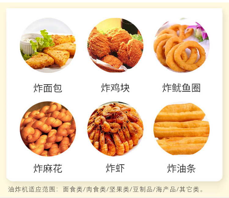 面食類/肉食類/堅果類/豆制品/海產品等食物的油炸