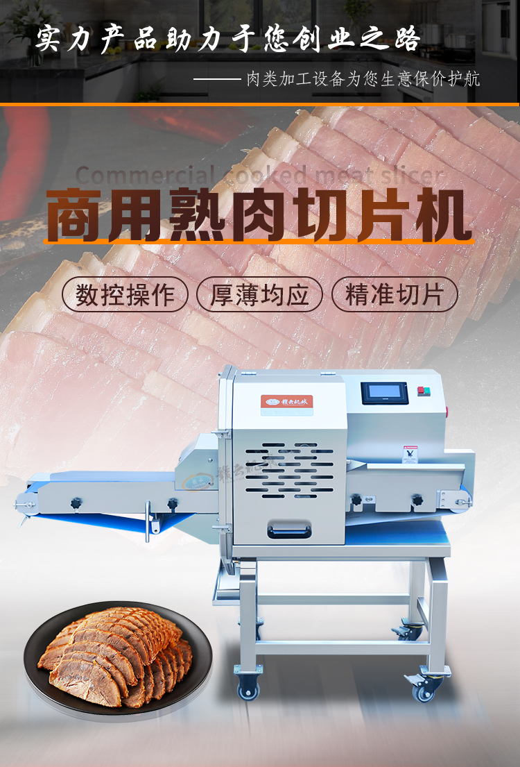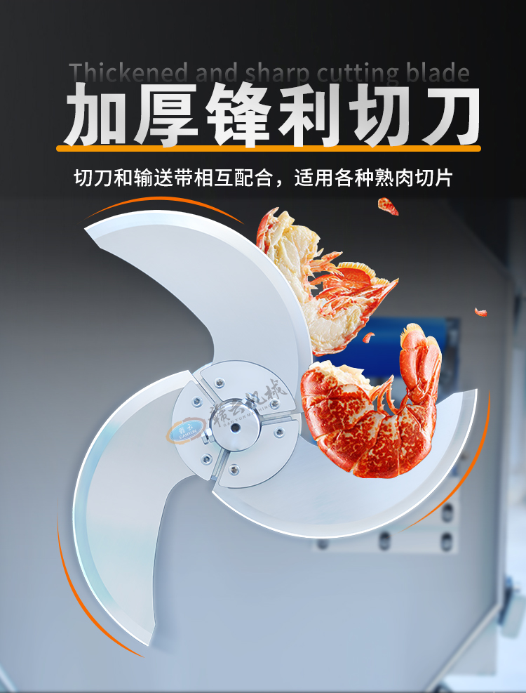用于豬頭肉、臘肉、牛肉、扣肉、五花肉、火腿等快速切片切段,適應多種食材。