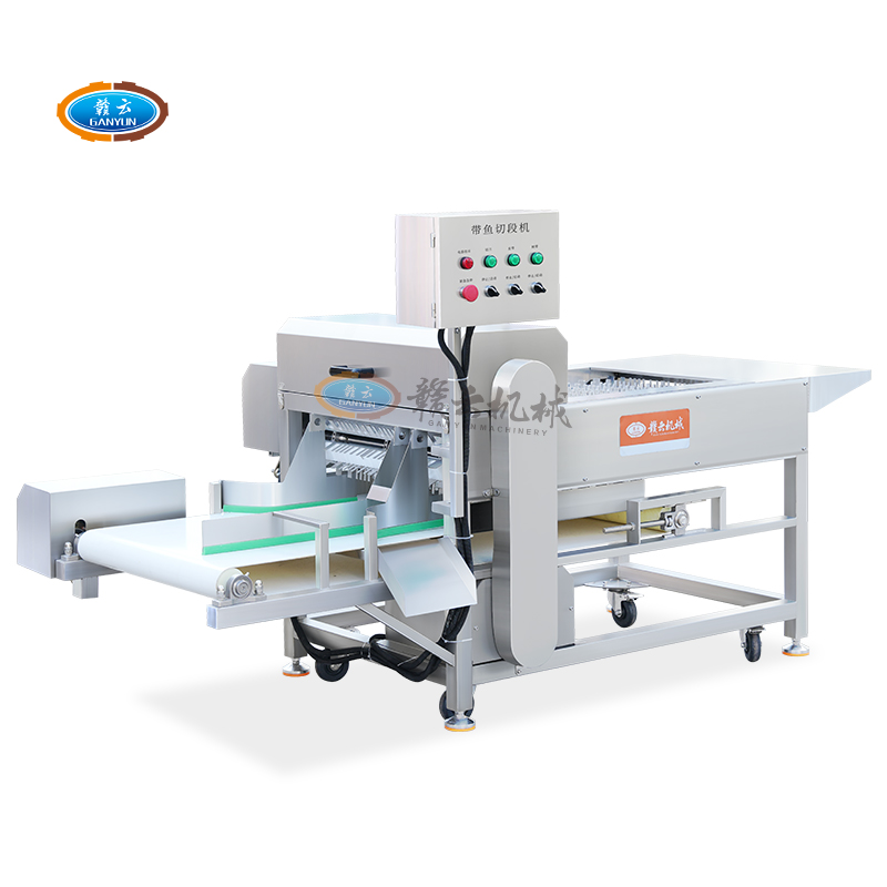 全自動帶魚切段機采用食品級不銹鋼制造,通過輸送式傳送帶魚,經過高速旋轉的圓形刀能快速高效精準地切割帶魚,設備結構緊湊堅固耐用,適用于鮮、微凍帶魚、秋刀魚、鴨脖、長條果蔬、山藥、鮮肉等多種長條物料切割,一機多用,切割效果好,切面平整,整體操作簡單,支持定制切割尺寸,滿足不同加工需求,是一款專業帶魚切段機設備。