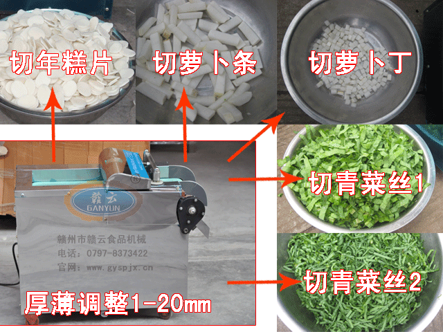 適用范圍:用于片、段、絲、條、丁等產(chǎn)品。如各種塊莖、葉菜、海帶等。也可切圓形如土豆、蘿卜等產(chǎn)品。 該機(jī)可將根、莖、葉等蔬菜加工成片、絲、丁、菱、片等,適用于醬菜加工廠及大型食堂、飯店等場所使用;