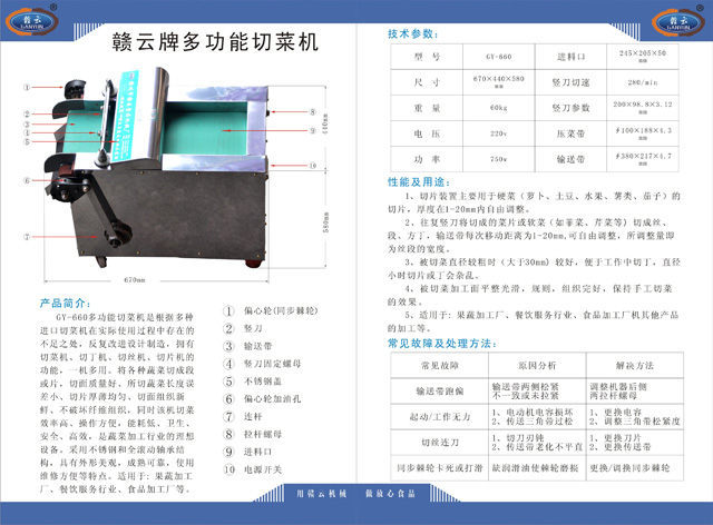 贛云牌多功能切菜機(jī)說明圖: