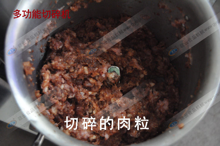 1、GY-QS-3多功能切碎機用于制作肉餡,打碎生姜、瘦肉,制作顆粒狀的肉餡;