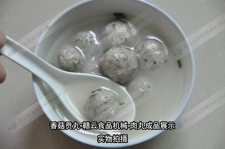 贛云食品機械肉丸成套設備的結晶,香菇貢丸,合作客戶獨家配方,用贛云牌肉丸設備制作的香菇貢丸,味美,有嚼勁,香菇原味,保證您吃了還想吃。香菇貢丸所需設備:自動絞肉機一臺,高速打漿機一臺,慢速打漿機一臺,食物切碎機一臺,貢丸機一臺,自動煮丸水槽一臺即可現做現賣,也可接單定做。相關設備的工作內容:自動絞肉機碎肉,高速打漿機將肉粒快速打成肉漿,慢速打漿機將肉漿調味,食物切碎機將香菇切成細小顆粒,放入慢速漿機中和肉漿一起調勻入味,貢丸機將肉漿成型貢丸,自動煮丸水槽將成型后的肉丸初步定型。批量的香菇貢丸就是這樣制作而成。