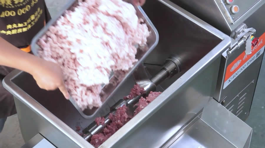 在將所有需要絞碎的原料通過絞肉機加工完成后,接下來這一步將使用贛云不銹鋼拌料機,這個拌料環節就很重要,攪拌過程中的的添加的配料順序和攪拌時間都將會影響最后做出來的肉丸口感。