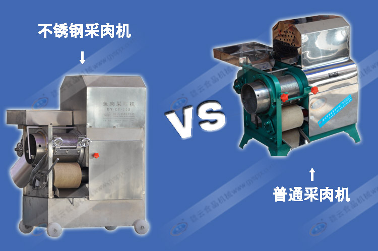 從產(chǎn)品的細(xì)節(jié)圖中可看出普通采肉機和不銹鋼采肉機的品質(zhì)區(qū)別。