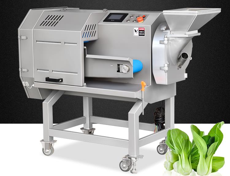 這臺商用切菜機器采用雙頭設計,擁有多種切割加工功能,,可以針對葉菜、球根莖類蔬菜的切片、切段、切絲、切丁、切塊等。