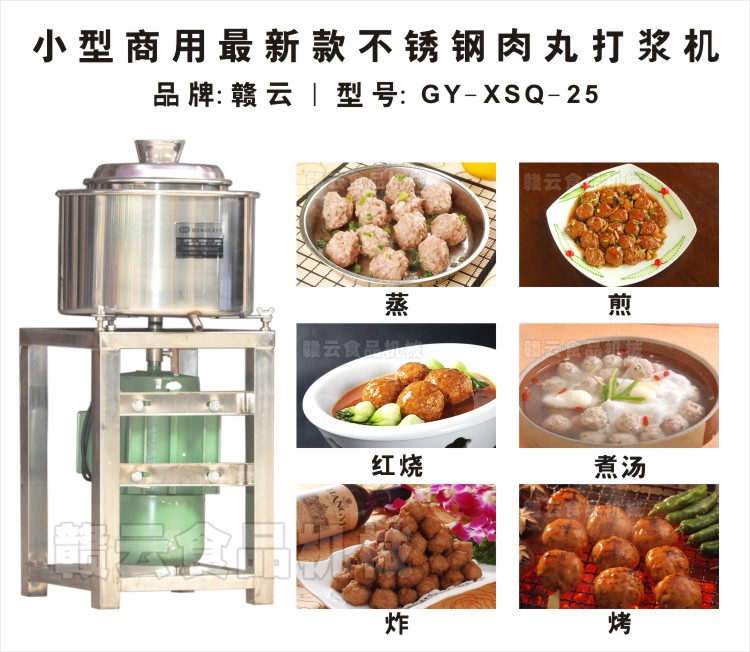 至2012年末贛云推出的最新款22全不銹鋼雙桶肉丸機以來,試產試營階段受到全國各地客戶青睞,曾幾度出現斷貨現象。打漿雙桶底部弧形設計是最新款不銹鋼雙桶肉丸打漿機的標志,這種設計新穎,解決了直立式肉丸打漿機打漿不夠均勻的現象,打漿過程能使底部肉漿更易翻轉,達到均勻調漿的目的,生產過程中采用全不銹鋼材質,打漿雙桶、刀片、刀套、支撐架等均是不銹鋼材質,并且使用了最新的無縫焊接技術,在生產過程中又給支撐架加粗加厚,使這款肉丸打漿機更顯高檔,氣派,是小型商用高檔打肉漿設備。目前我們這種最新款全不銹鋼雙桶肉丸打漿機由最初的22型試產試營,現大量生產有三種型號:22型、25型和18型,其他型號會在后續中加工出來,敬請關注贛云機械最新產品發布。