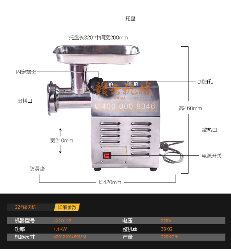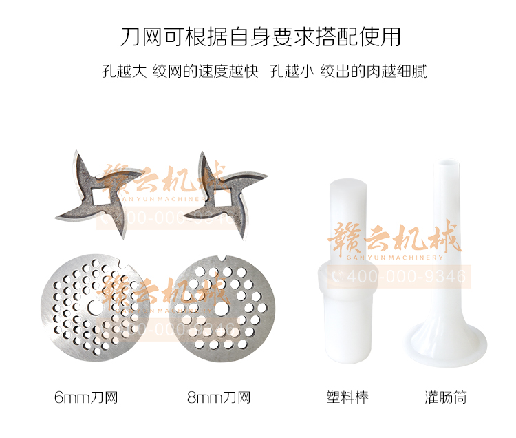 小型絞肉機適用于任何酒店、飯店、食堂、餐廳等。有不同規格的立式、臺式機型,省電省電,經久耐用,方便快捷,電動絞肉機,外形美觀,效率高,功耗低。同時,價格低廠家直銷的價格,可靠的質量,先進的高級不銹鋼,經久耐用,可長時間使用,絞肉餡效果好,性能穩定,采用進口的銅芯電機,人性化設計,安全可靠,不僅有設計安全的裝置,并且在絞肉的時候配有與任何肉類可以攪拌攪拌軸,無任何不安全因素,可以按照工藝要求切成顆;蛉饽,便于和其他輔料混合,鮮肉絞肉機器滿足不同肉制品的需要,小型絞肉機具有操作簡單,價格低,質量好。贛云食品機械為您提供各自肉制品加工設備,歡迎您前來了解。