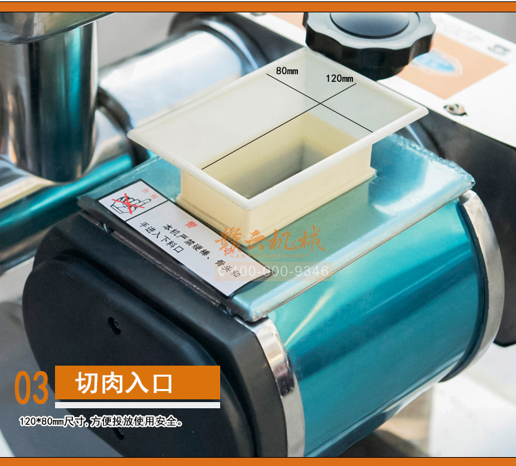 (5)添加肉塊一定要均勻,不能過多,以免影響電機損壞,如發(fā)現(xiàn)機器運轉(zhuǎn)不正常,應(yīng)立即切斷電源,停機后檢查原因。