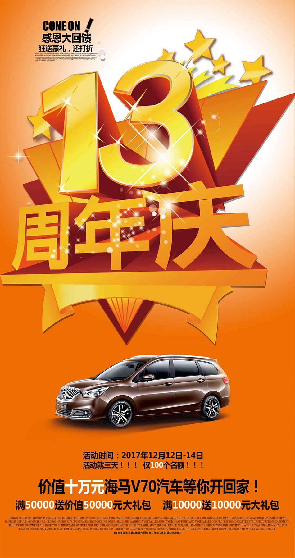我們?cè)?2月13日-15日參加第二十四屆廣州國(guó)際酒店用品展覽會(huì),同時(shí)舉辦年底距惠活動(dòng)。買設(shè)備送車,還有折扣,年度僅限這三天,就100個(gè)名額!!!
