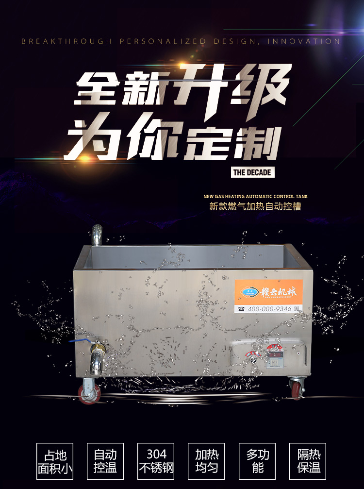 燃氣加熱自動控溫槽,是我公司全新設計研發的一款適用于油炸、水煮、滅菌各類食品及定型、熟化、油炸各種肉丸的多用槽。