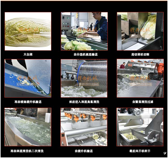 贛云掌握中央廚房凈菜設備核心技術,本套設備由分選輸送設備、數字多元化切配設備、提升機設備、渦流臭氧清洗去農藥殘留設備、高頻振動機、渦流清洗機、風干機等組合而成。