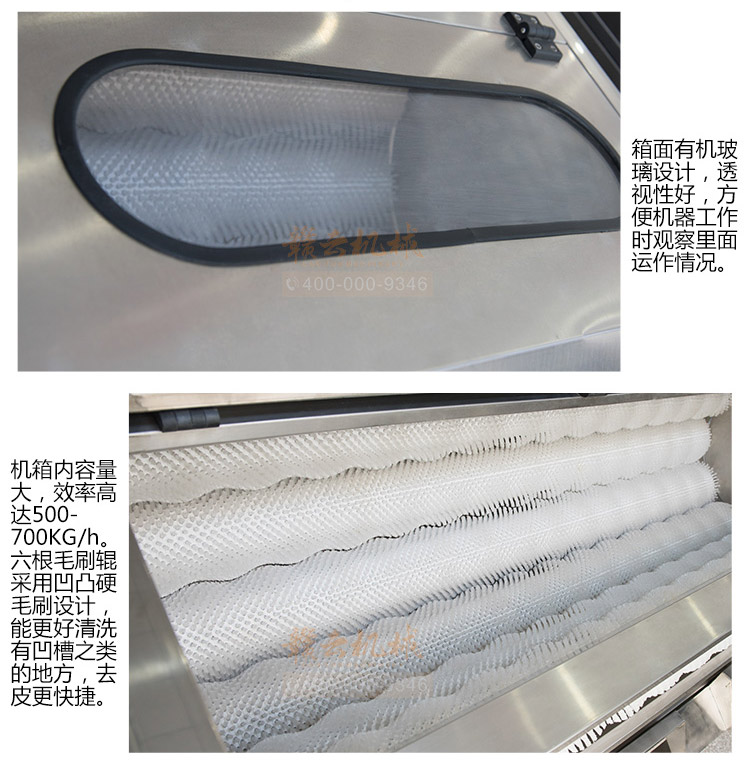 本設備主要采用304#不銹鋼制作(電機減速機、電器元件、軸承、毛輥刷等特殊部件除外),符合食品加工衛生要求,,整機操作簡便、便于操作,具有工作平穩可靠、噪音低、工作效率高等特點。