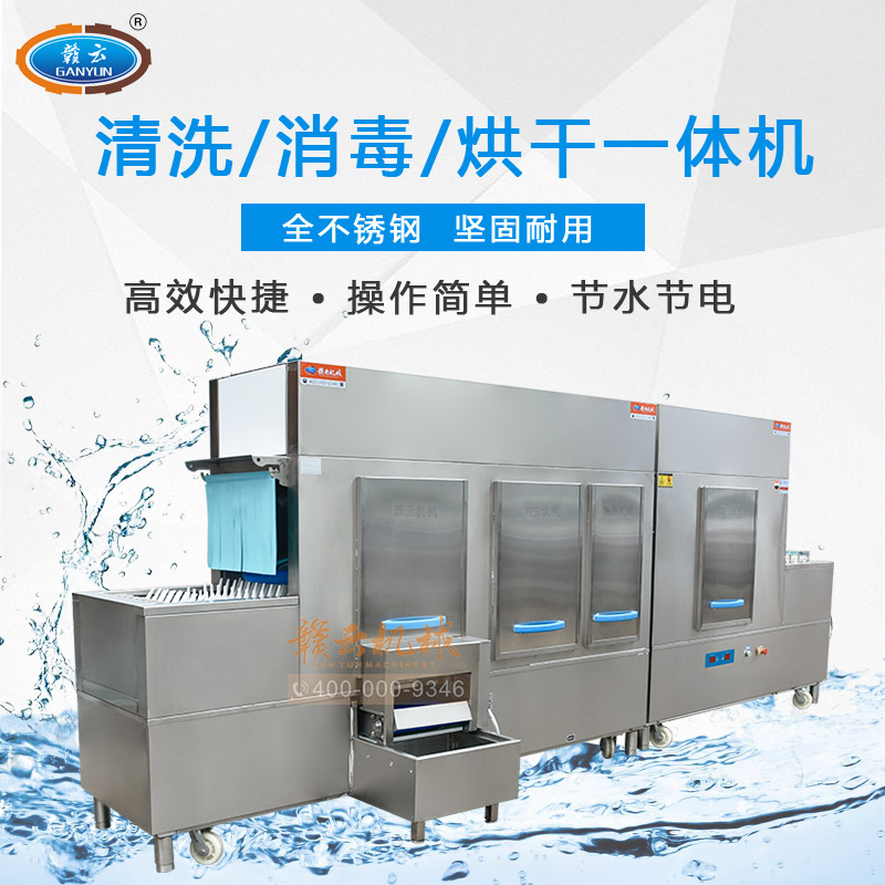 贛云新款長龍式式洗碗機,本系列產品經過除渣、初洗、清洗、漂洗、消毒、烘干一體化流水線操作,清洗簡單,撥齒型傳送帶,能更好的固定碗碟,洗滌過程中不易碰撞損壞,采用斜插式傳送,不需裝筐,不必考慮形狀,直接擺放清洗即可;碗碟斜插式進入清洗,清洗無死角。