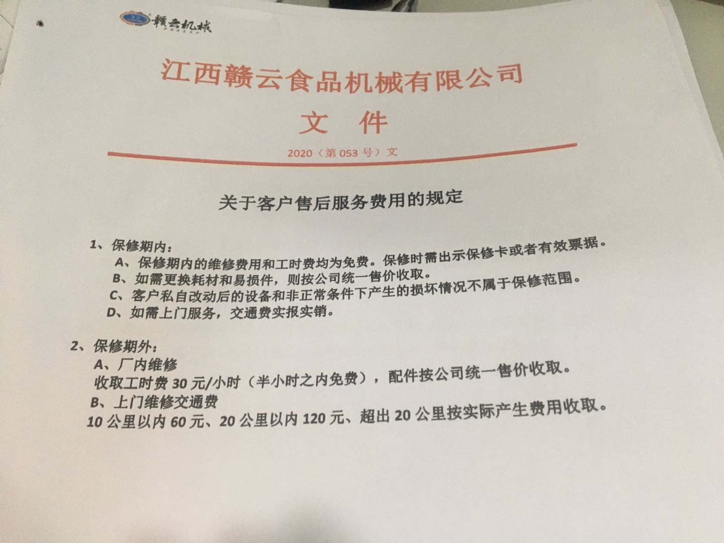 A,廠內(nèi)維修收取工時(shí)費(fèi)30元/小時(shí)(半小時(shí)之內(nèi)免費(fèi)),配件按公司統(tǒng)一售價(jià)收取。