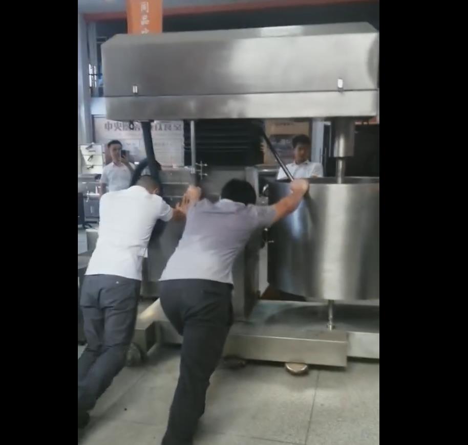 4個人使用工具來推還非常吃力,這下子大概能看出其有多大了吧,這種體積是我們贛云食品機械最大的肉丸打漿機可以名副其實的成為鎮店之寶了,今天就被人給定走了。