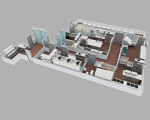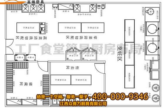廚房區域分布,一般分為:主操作區、食材加工區、清洗區、配菜區、消毒區、備餐區、食材庫、排污系統、排煙系統。
